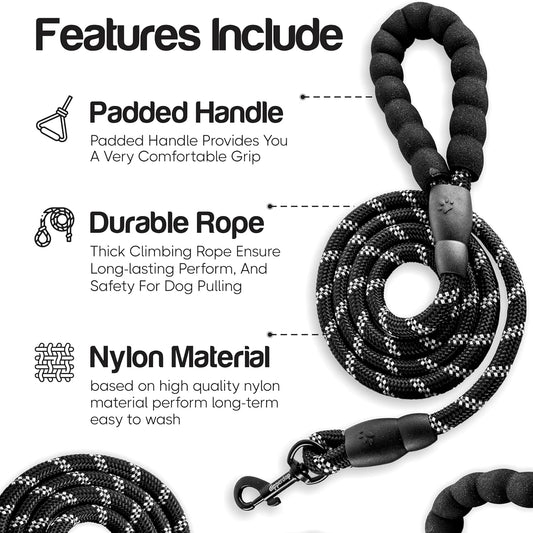6-Foot Dog Leash Large Dogs with Soft Handle Reflective Leash for Large Breed Dogs | Dog Leash for Small Dogs, Leash for Dogs | Heavy-Duty Nylon Dog Leash for Small Dogs in Black or Purple (Black)