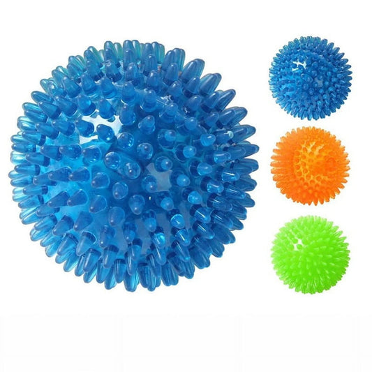 Dog Chew Toys, Fetch Spike Balls Squeaky Interactive Tooth Cleaning Teething Training Aggressive Chewer, Durable Rubber TPR for Small Medium Dog and Puppy (Large Size, Blue)